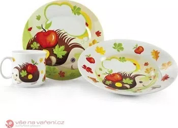Informace o výrobkuBanquetPopisDětský jídelní sada JEŽEK 3 ks zpestří jídlo našim nejmenším. Jídelní sada je vyrobená z kvalitní keramiky a je vhodná do jak do mikrovlnné trouby i do myčky na nádobí. Sada obsahuje: mělký talíř 20 cm, hluboký talíř 20 cm, hrnek 210 ml.ParametryProduktové číslo60YDDS03B