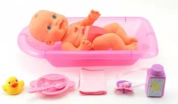 Informace o výrobkuTeddiesPopisPanenka představující roztomilé miminko přinese skvělou zábavu všem malým pečovatelkám. Každá správná maminka ví, že miminko se velmi snadno znečistí, a proto je potřeba jeho hygieně věnovat spoustu úsilí. Jelikož je toto miminko jako opravdové, je i trochu špinavé a úkolem vaší holčičky mimo jiné bude udržovat jej v čistotě. V balení najdete vše, co je ke koupání miminka potřeba, navíc i mističku se lžičkou a dudlíček.ParametryVěk dítěte3 roků