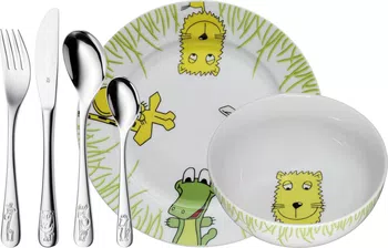 Informace o výrobkuWMFPopisI malí strávnici si potřebují své jídlo vychutnat a užít. Už jenom samostatná konzumace je pro ně zážitkem. Proto jsou dětské příbory a sady WMF speciálně navržené pro dětské ruce a pro trénování jemné motorické dovednosti. Sada obsahuje lžíci, vidličku, nůž, malou lžičku, talířek a misku.Parametry